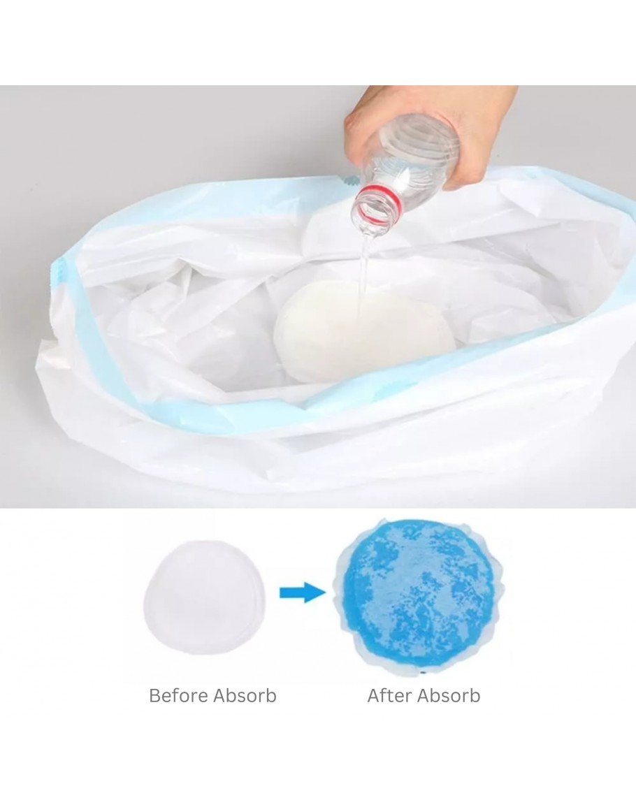 - No need to clean out the liquid and solid waste from portable commode toilets. After use, just need to remove the liner, tie it with a drawstring for a seal-tight closure and dispose it.