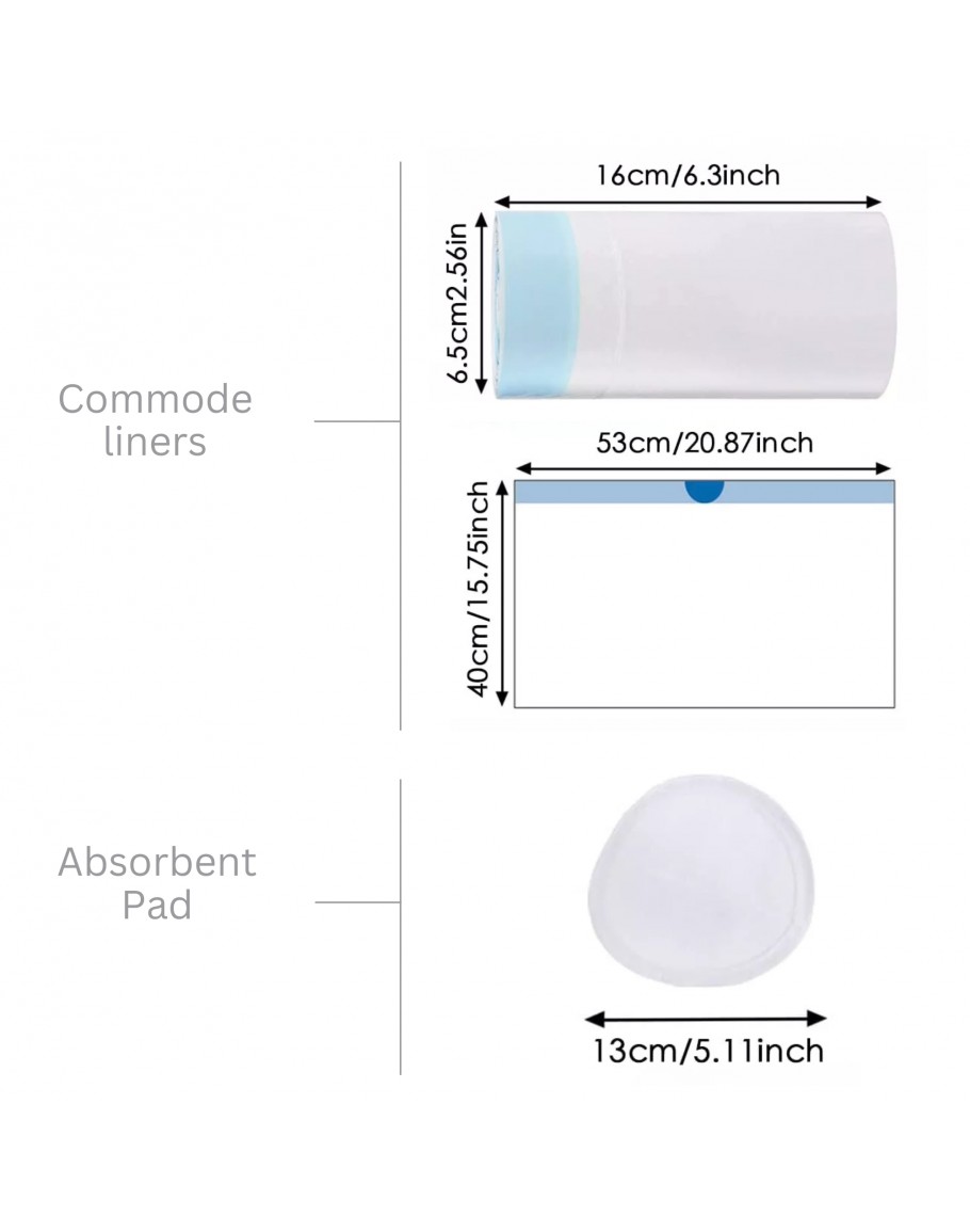 - 53 x 40cm/20.8 x 15.7inch(L*W) to fit any standard or bariatric commode pail, each liner has a drawstring for easy, sanitary and spill-proof disposal.