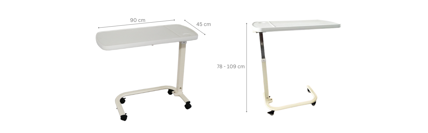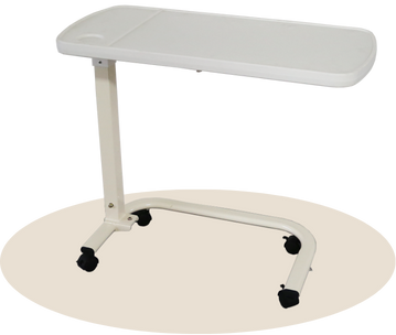 The Plastic Overbed Table is designed to provide a stable surface for patients to eat or engage in other activities while lying in bed. It can be adjusted in height to accommodate different patient needs and preferences.