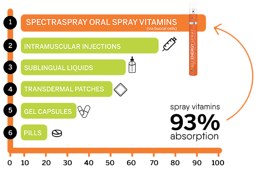 SpectraSpray Oral Spray Vitamins absorb via your oral mucosa (inside of your cheek)