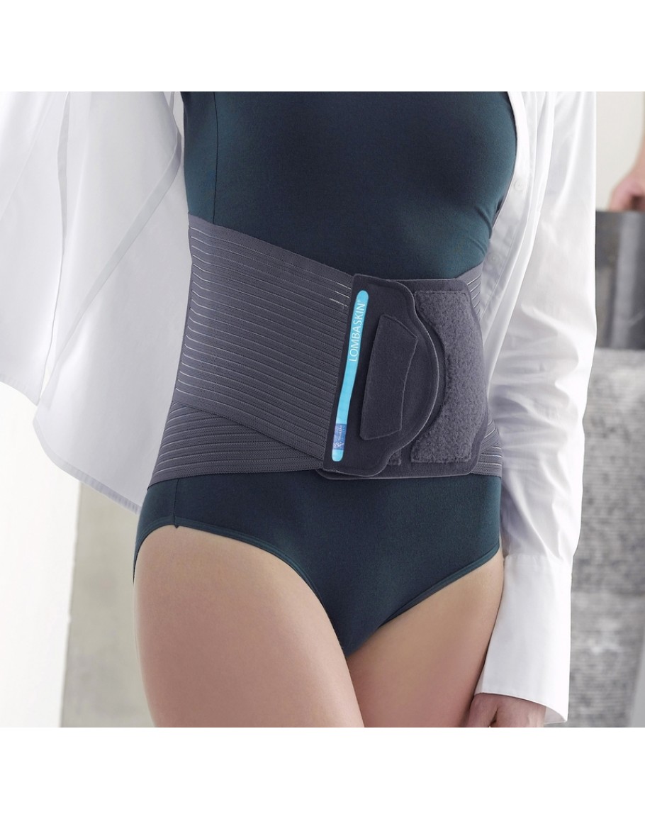 LombaSkin® Lumbar Belt v2 is a back support belt that offers adjustable compression using 4 positioning steel plates. It is designed to be discreet and lightweight.