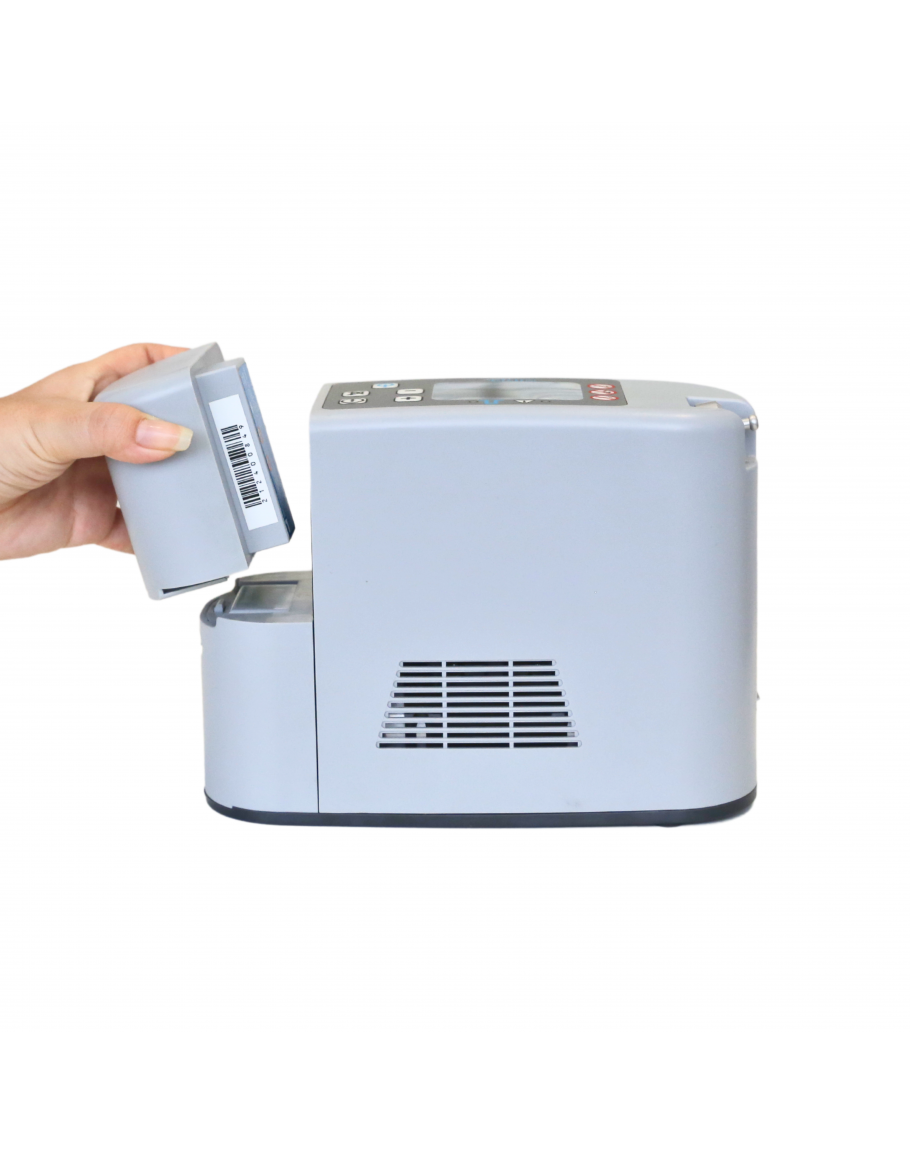 The Nidek Nuvo Nano Portable Oxygen Concentrator has a battery life of up to 3.5 hours on setting 1. Comes with 2 sets of batteries. Weighing at 2.1 kg, suitable for carrying it around.