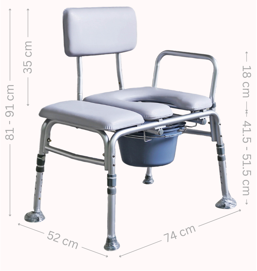 The FT7401 Aluminium Bench Commode is designed to help patients with limited mobility. Water-resistant padded cushion for added comfort, making it appropriate for patients to use it as a commode or shower chair.