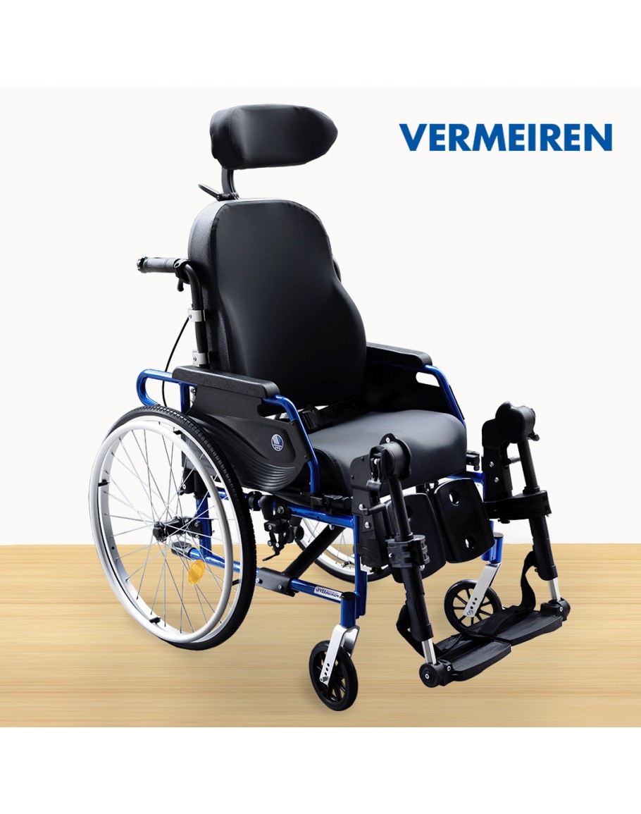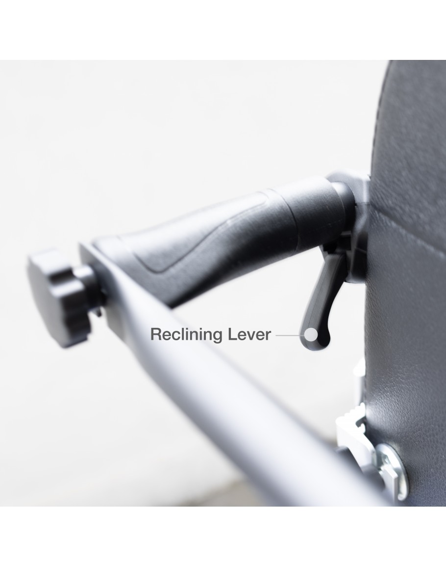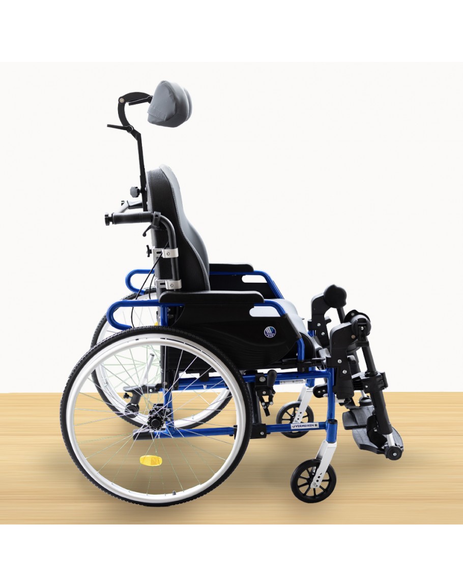 The Vermeiren ECL X260 Eclips Reclining Wheelchair features a lightweight aluminum frame. Users have the flexibility to recline up to 160°, allowing for a flat profile and enhanced comfort.