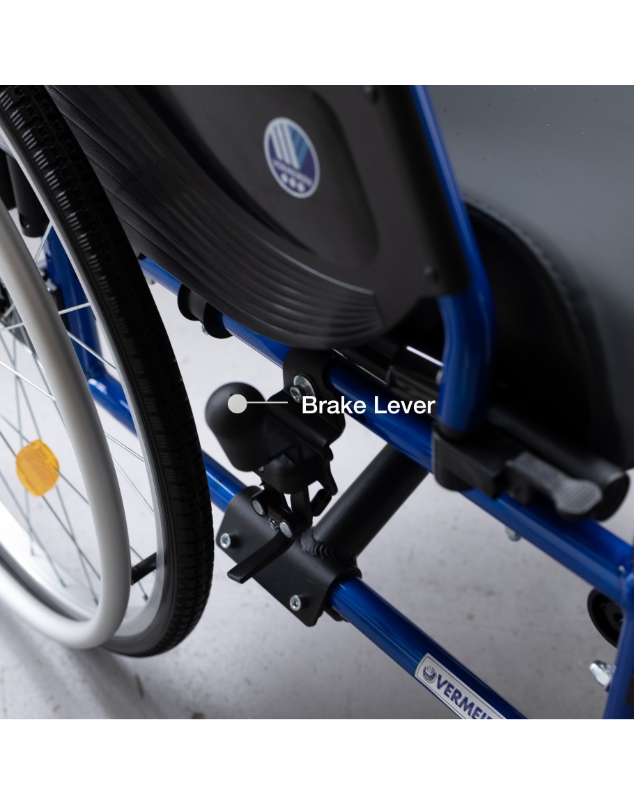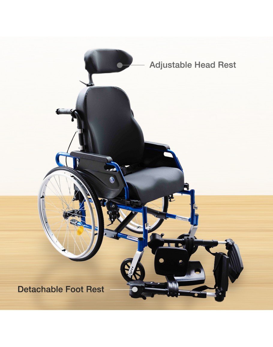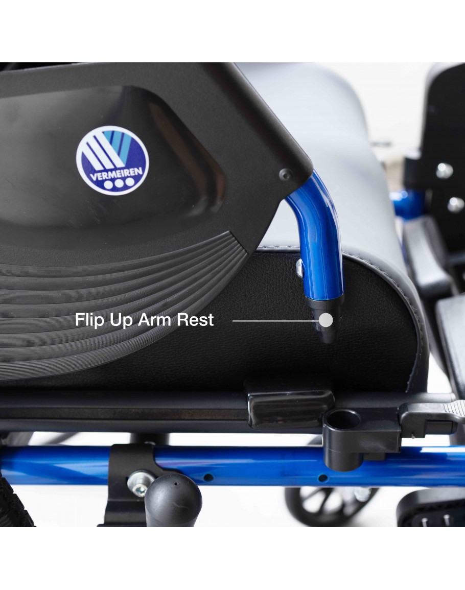 The Vermeiren ECL X260 Eclips Reclining Wheelchair features a lightweight aluminum frame. Users have the flexibility to recline up to 160°, allowing for a flat profile and enhanced comfort.