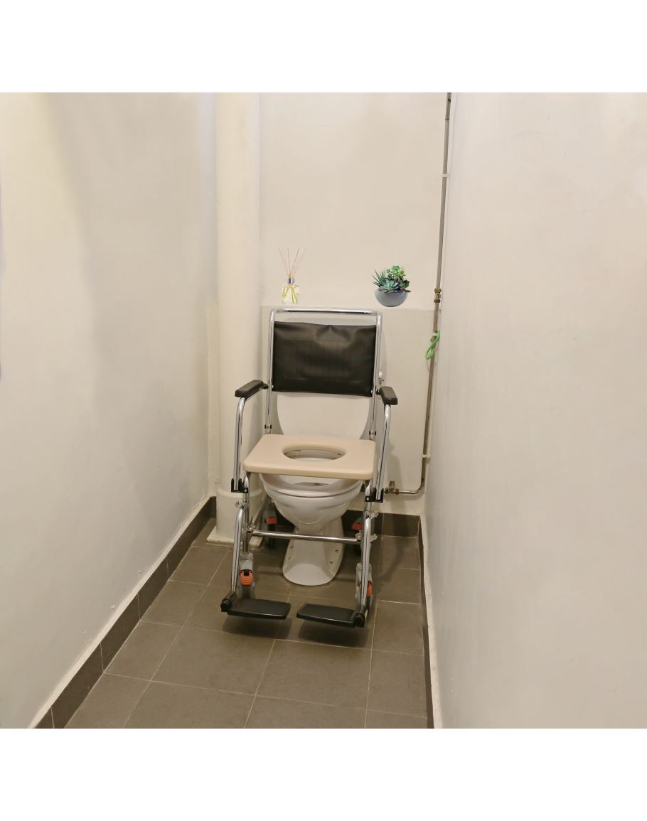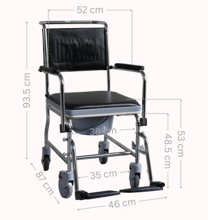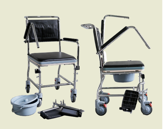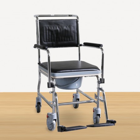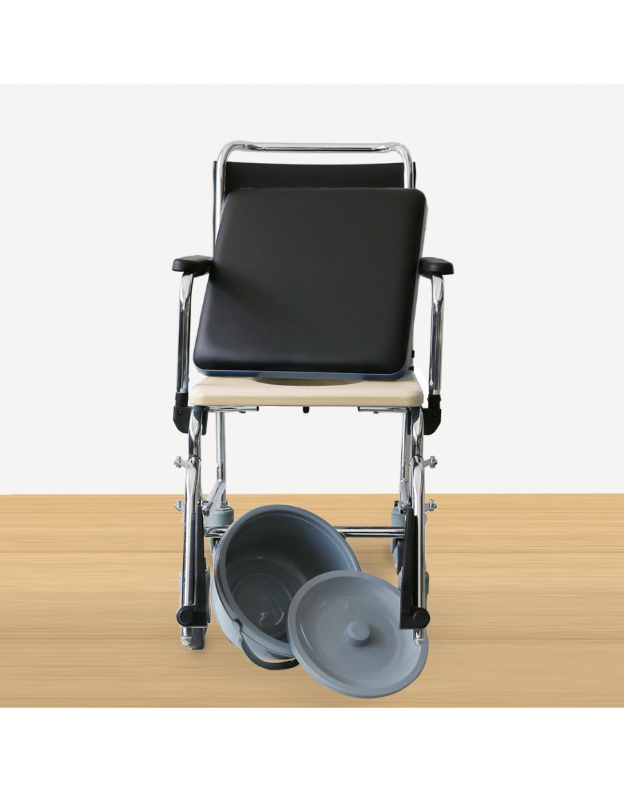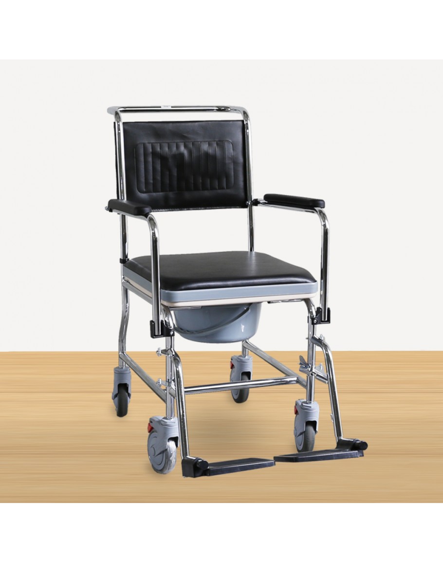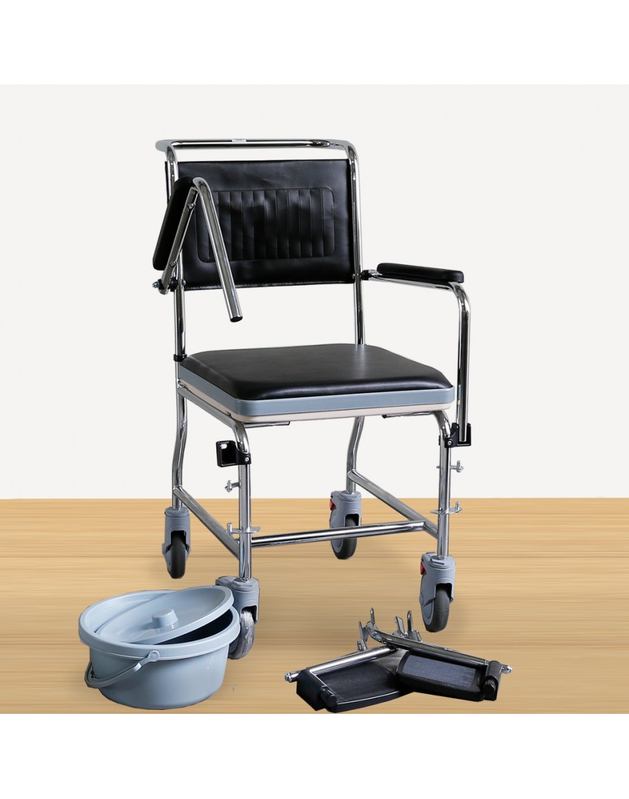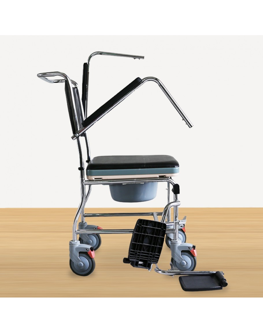 The FS692 Detachable Chrome Commode is made of lightweight polished chrome frame and acts as a 2 in 1 commode, serving as both a commode and an indoor wheelchair.