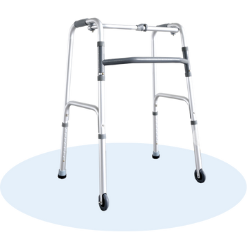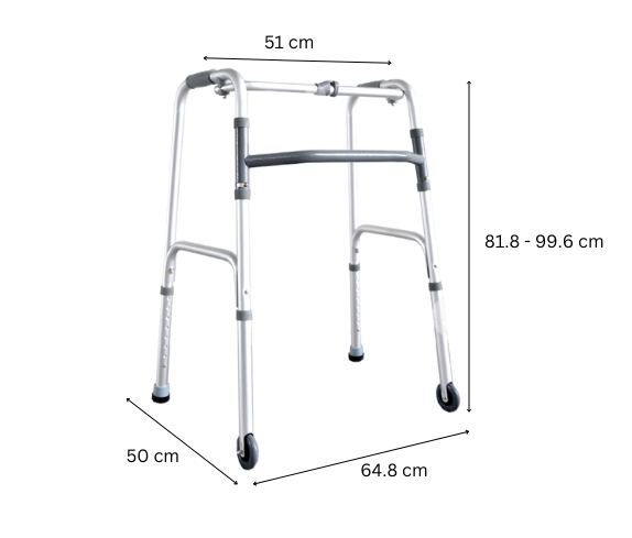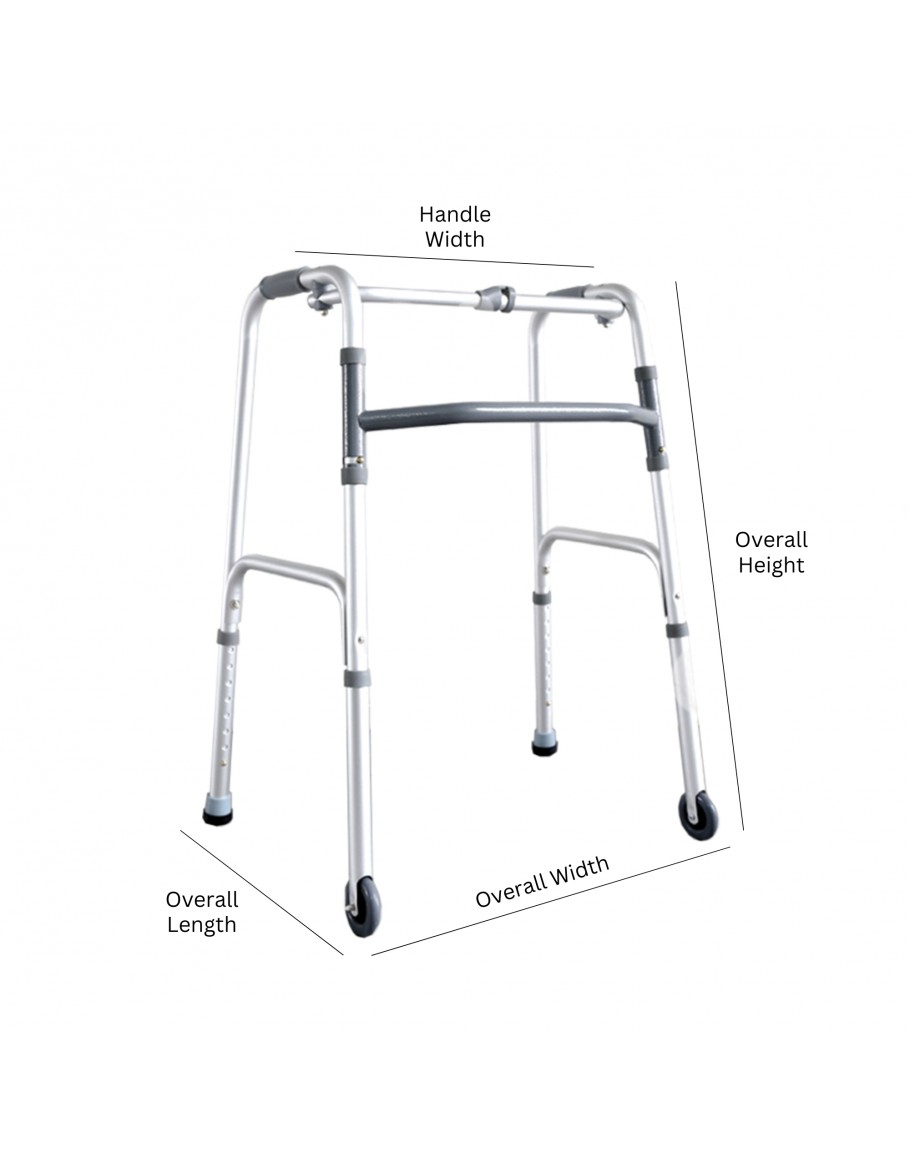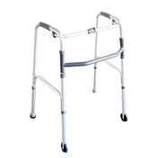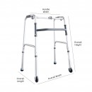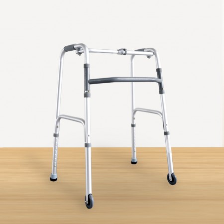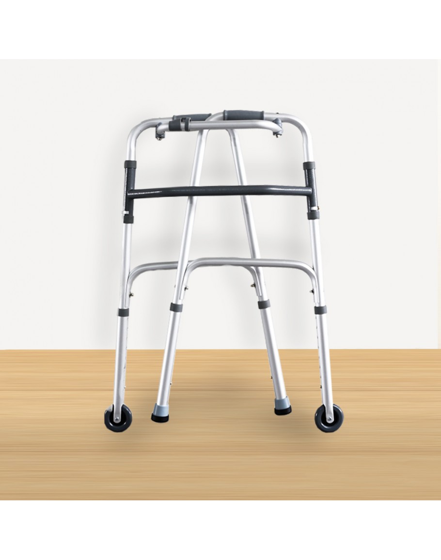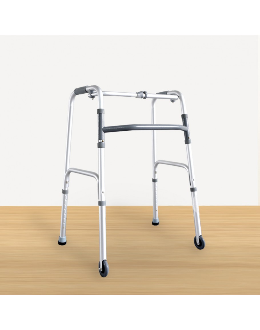 FT31103 Foldable Walking Frame is suitable for both indoor and outdoor use. The walking frame is equipped with two front wheels for enhanced mobility, ferrule tips for secure traction, and a retractable stopper for added safety.