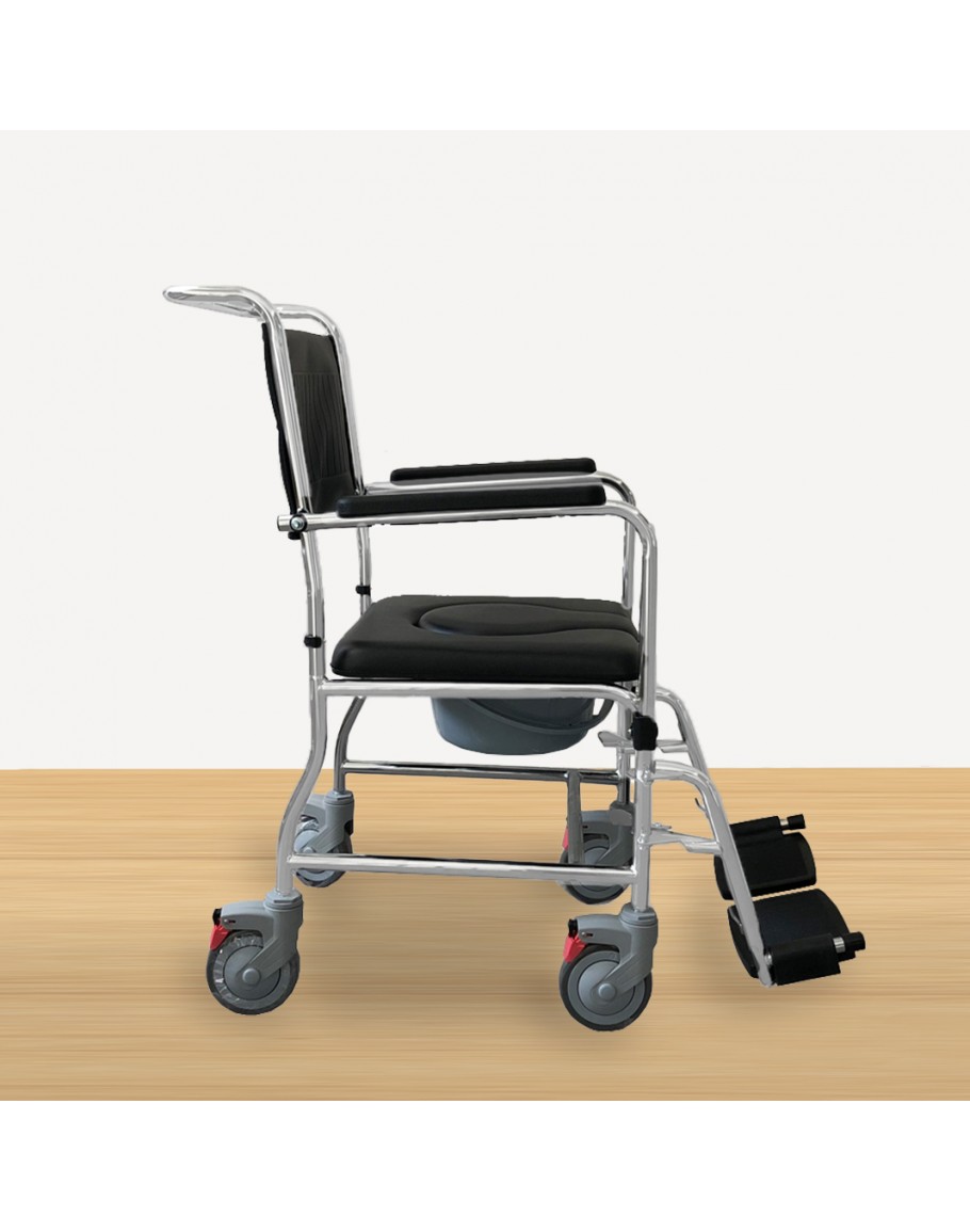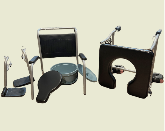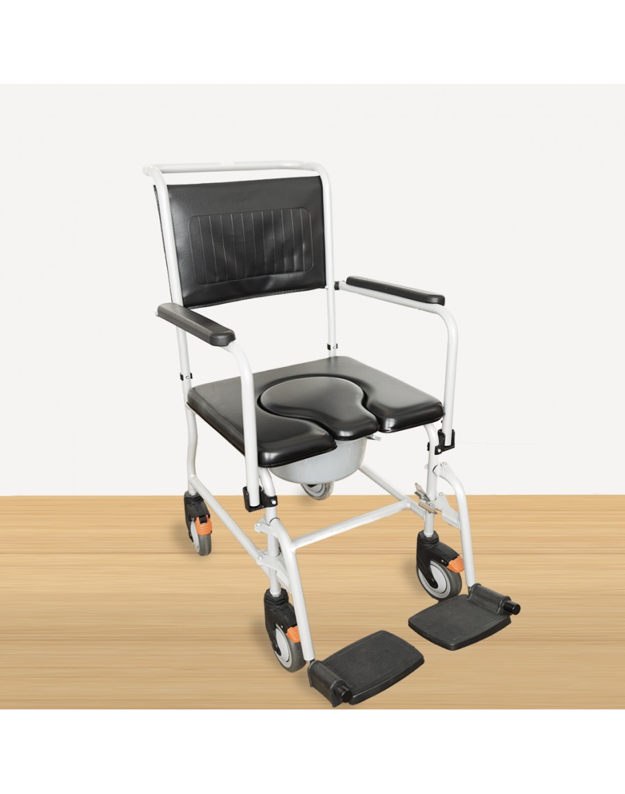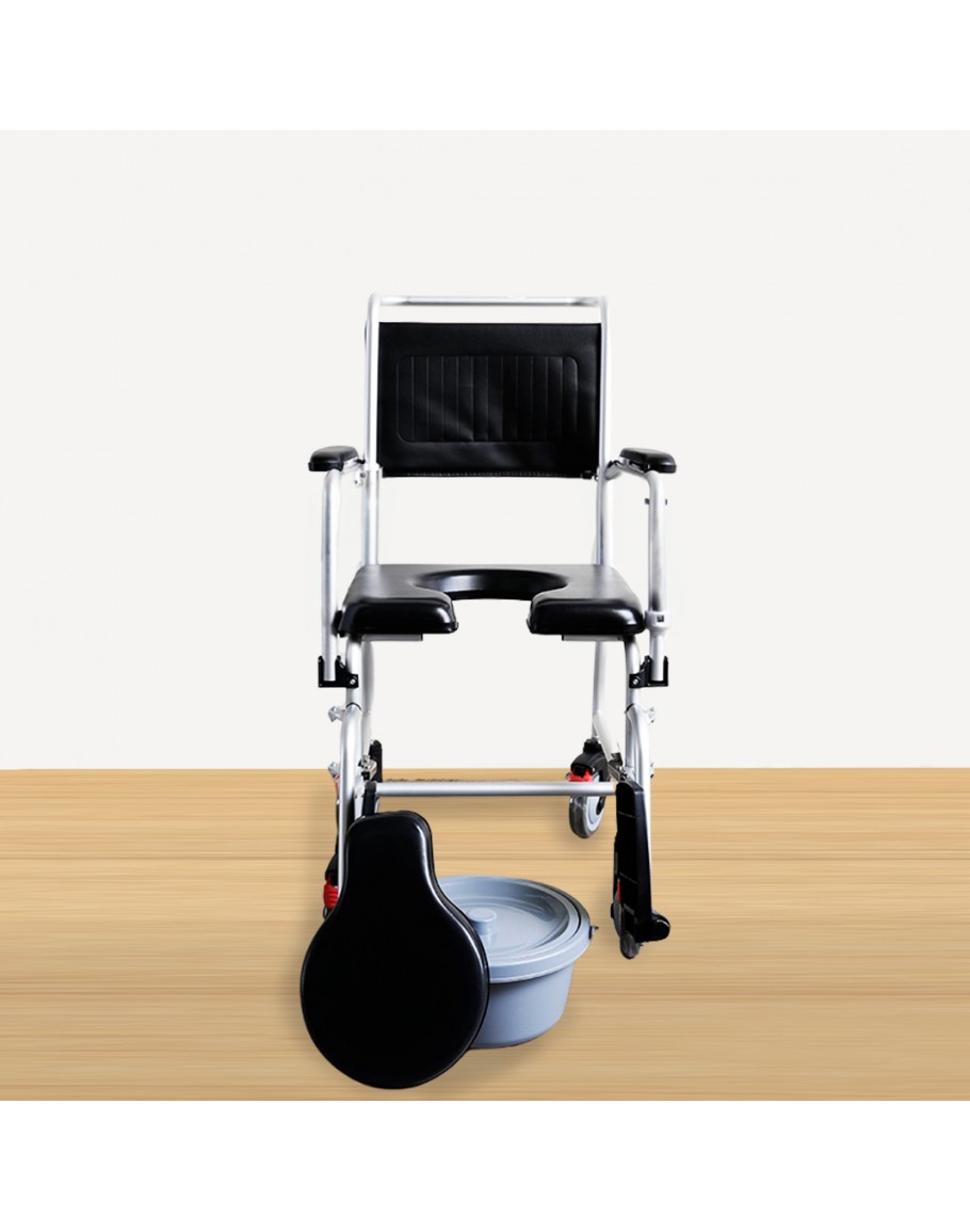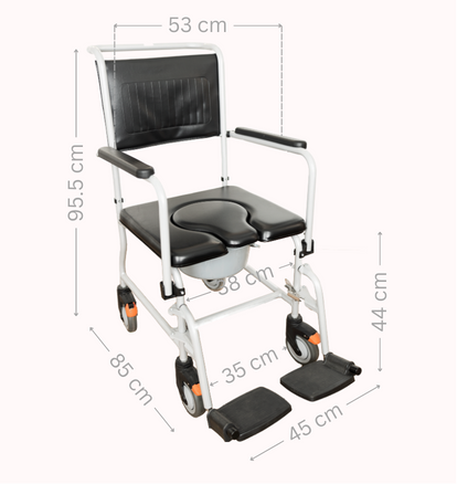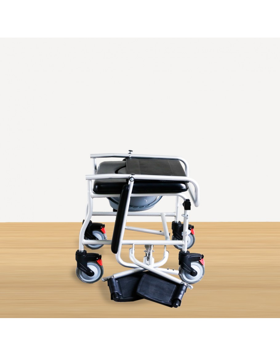 The KJW-312L Detachable Aluminium Commode is made of aluminium frame and acts as a 3 in 1 commode, serving as both a commode, shower chair and indoor wheelchair.