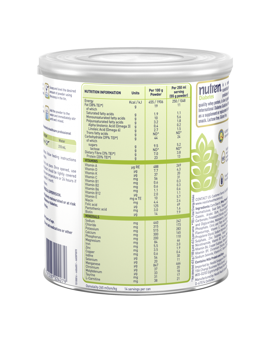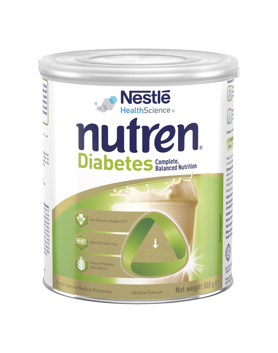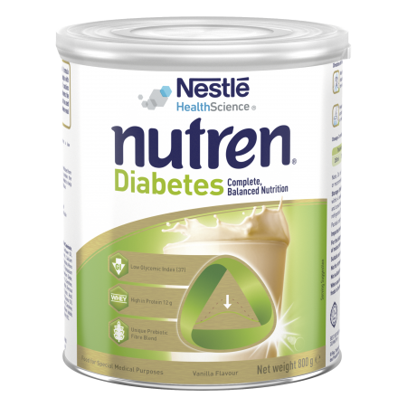 Nutren Diabetes Powder is a nutritionally balanced, complete formula for oral consumption or tube feeding, designed for people with diabetes. It can be used as a sole source of nutrition or as a meal replacement