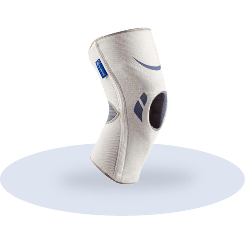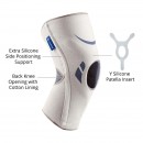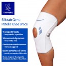 The Silistab Genu is a patella femoral knee support. Proprioceptive stimulation is provided by a silicone patellar insert and an elastic compressive knit of approximately 24 mmHg.