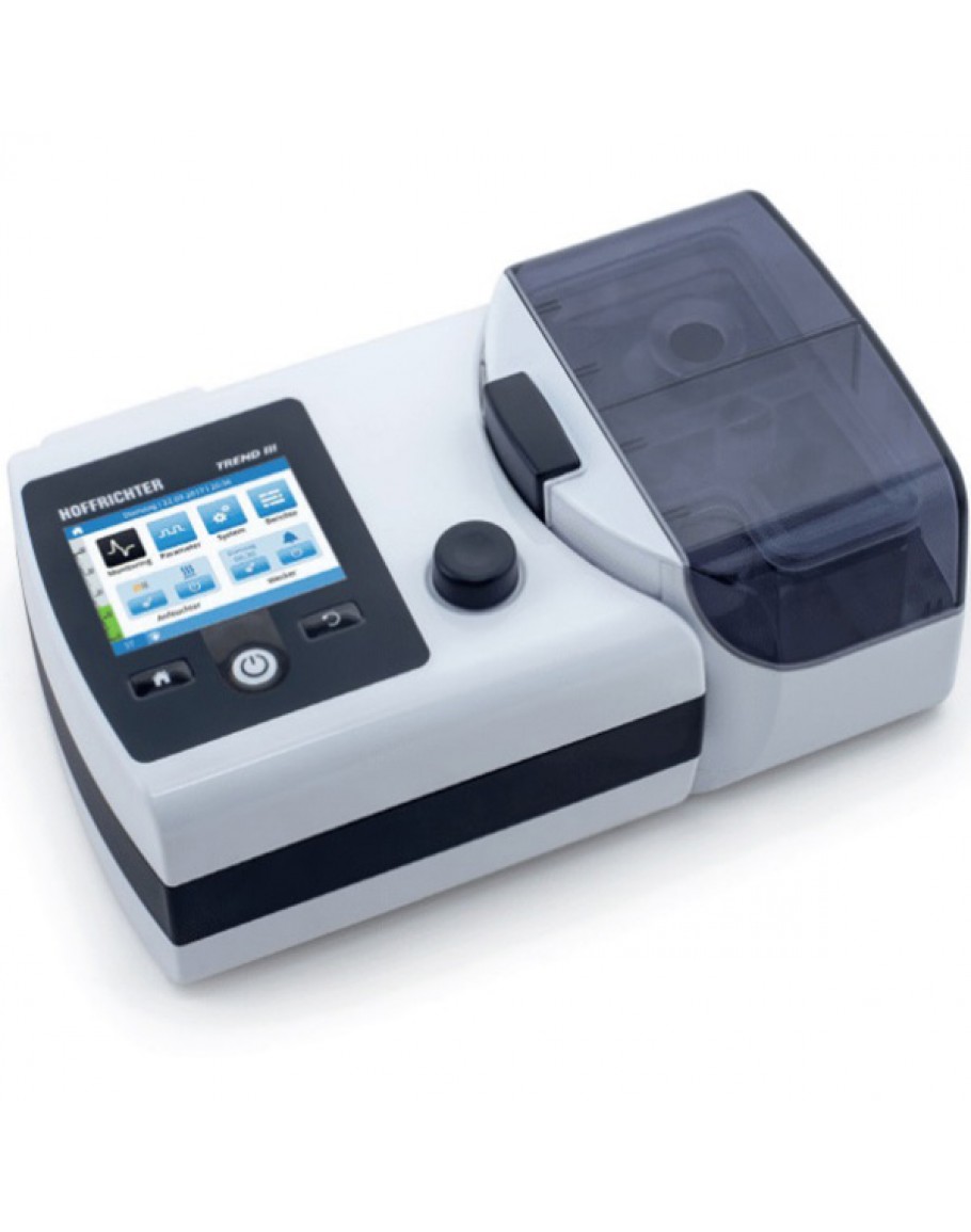 The AquaTREND III-NG Humidifier is a heated humidifier that plugs into the respiratory treatment device. Its purpose is to humidify the treatment air flow in order to keep the upper respiratory tract's mucous membranes from getting dry.