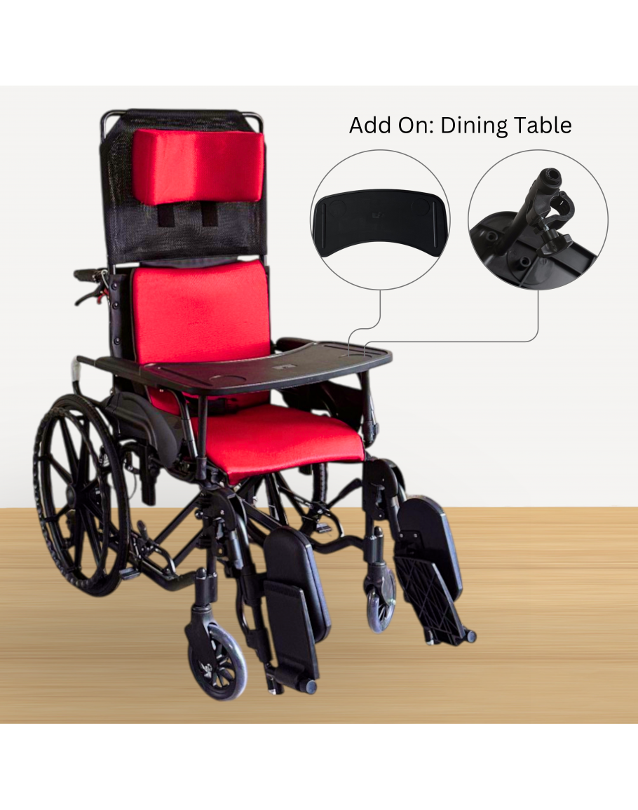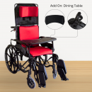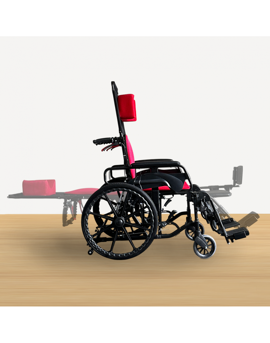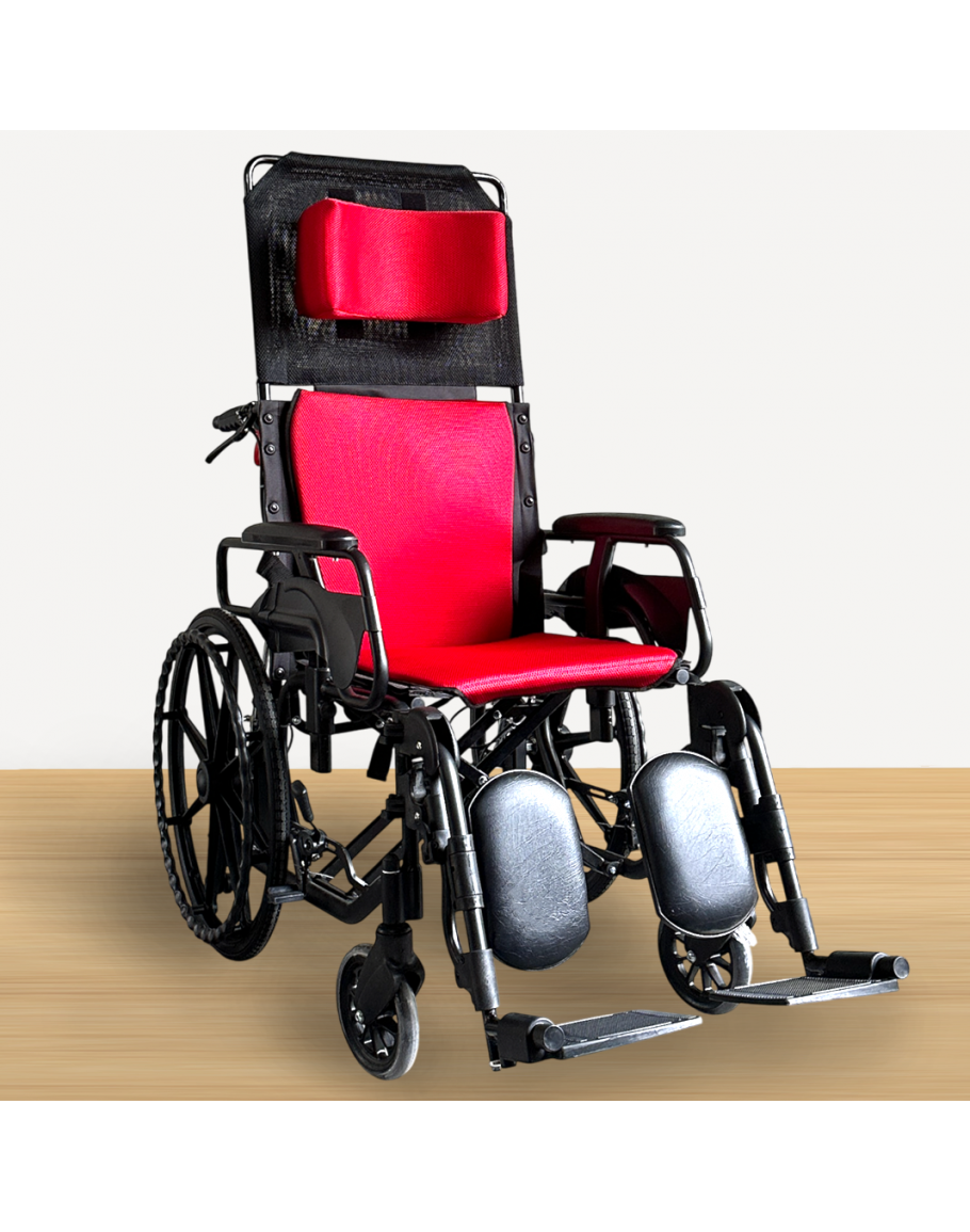The HBL-40 Reclining Wheelchair features a lightweight aluminum frame and includes detachable armrests and elevating footrests. Users have the ability to fully recline 180º, achieving a completely flat profile for optimal comfort.
