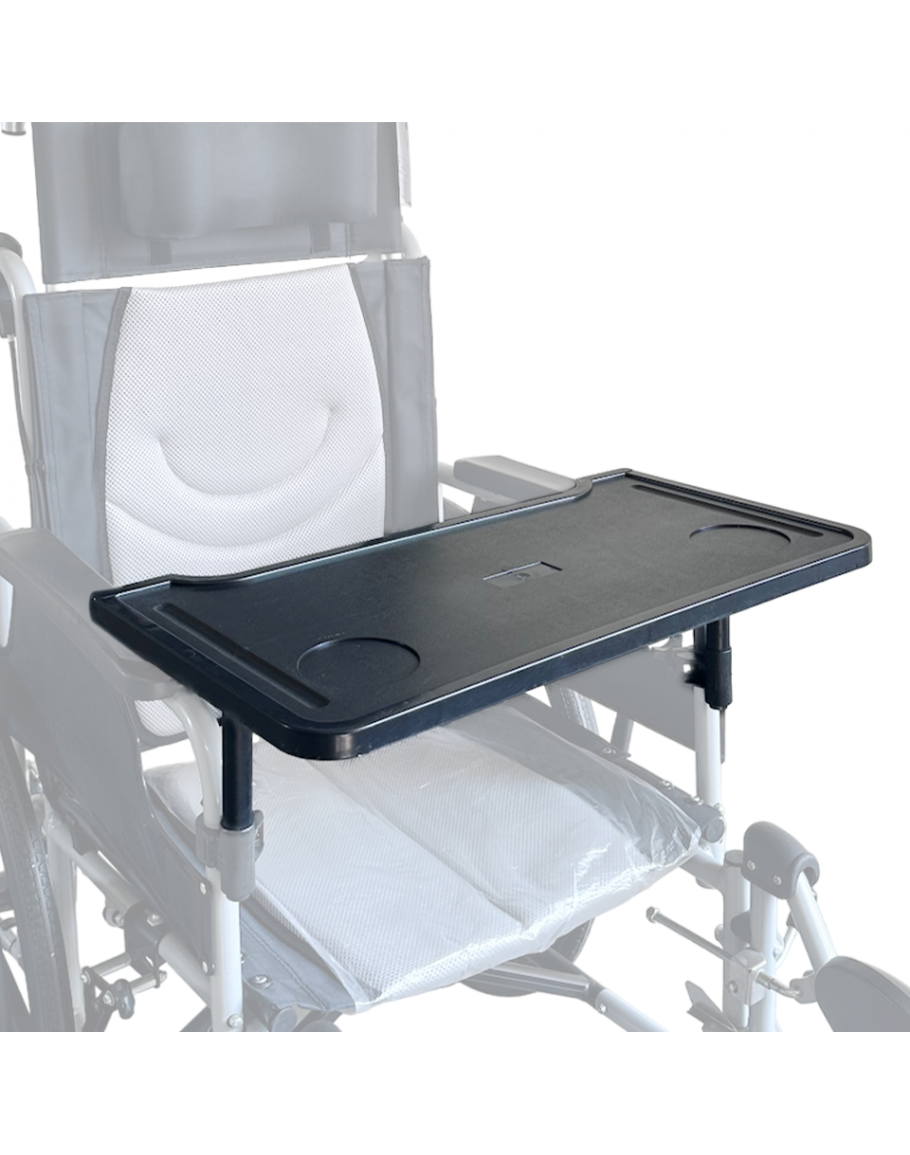 The Wheelchair Table is a detachable add on to allow users to place items such as reading material, meal cutlery and other small items for convenience.