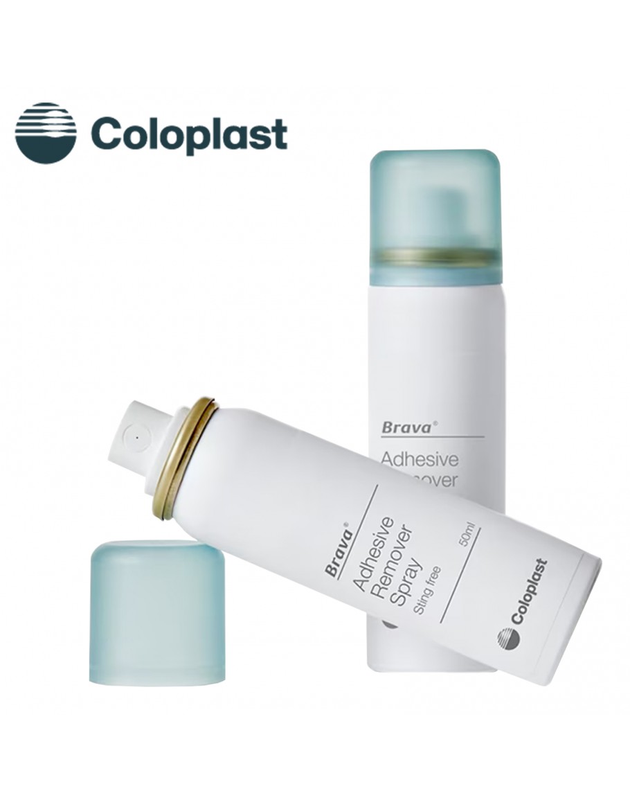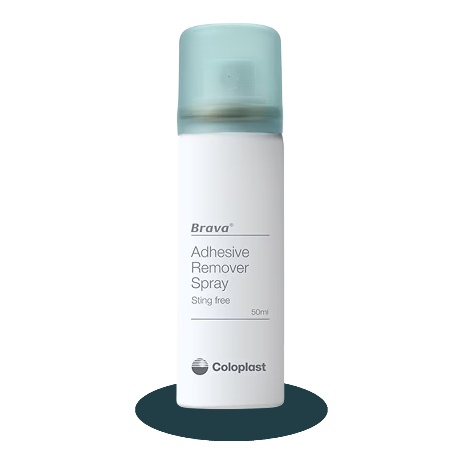 Coloplast Brava® Adhesive Remover Spray quickly and gently dissolves medical adhesives, making ostomy barrier removal easy and comfortable without irritating skin.
