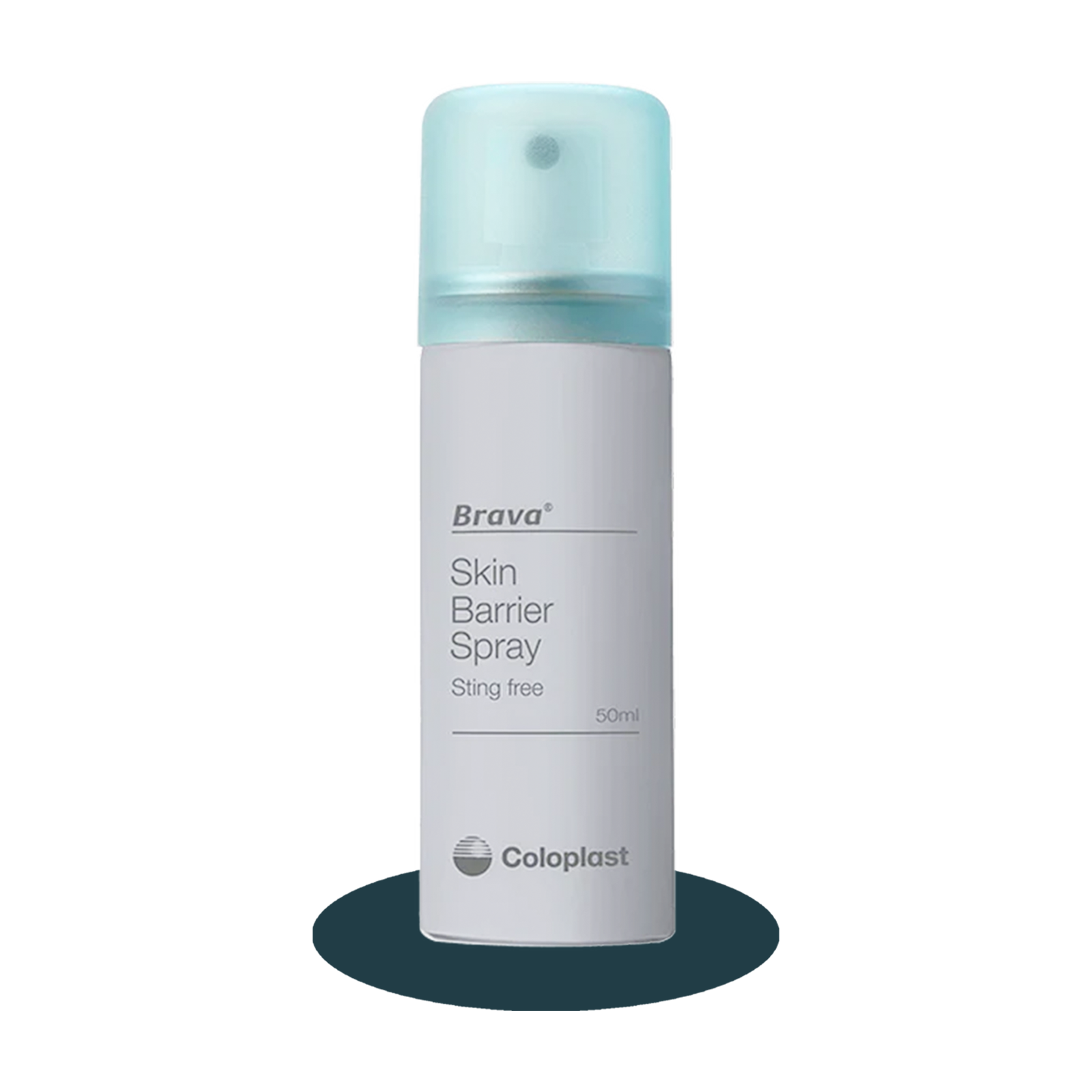 Coloplast Brava® Skin Barrier Spray forms a protective, no-sting film on peristomal skin, helping prevent irritation and improving ostomy barrier adhesion for lasting comfort.