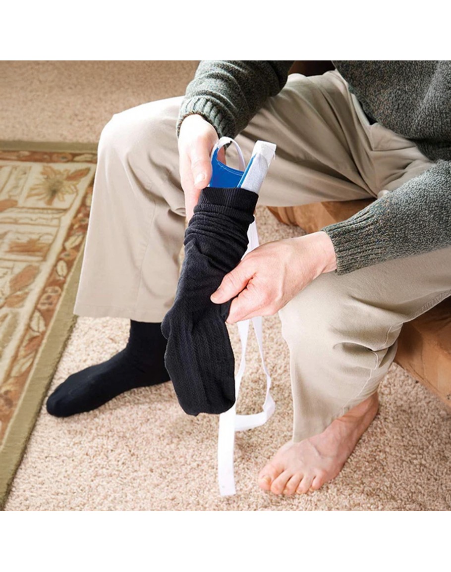 Put on socks easily without bending! This lightweight sock aid features a soft terrycloth grip, smooth nylon interior, and long loop handles—perfect for seniors or post-surgery recovery.