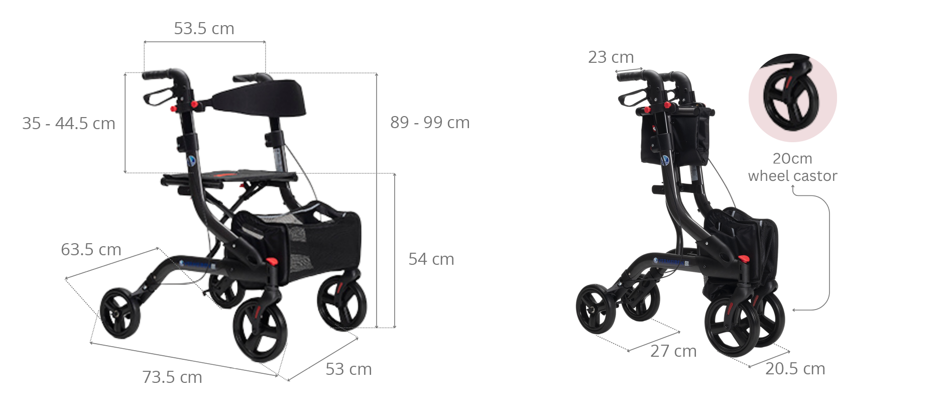 The Four-Light 4 Wheel Rollator is a walking aid designed to assist users to walk independently and with stability.