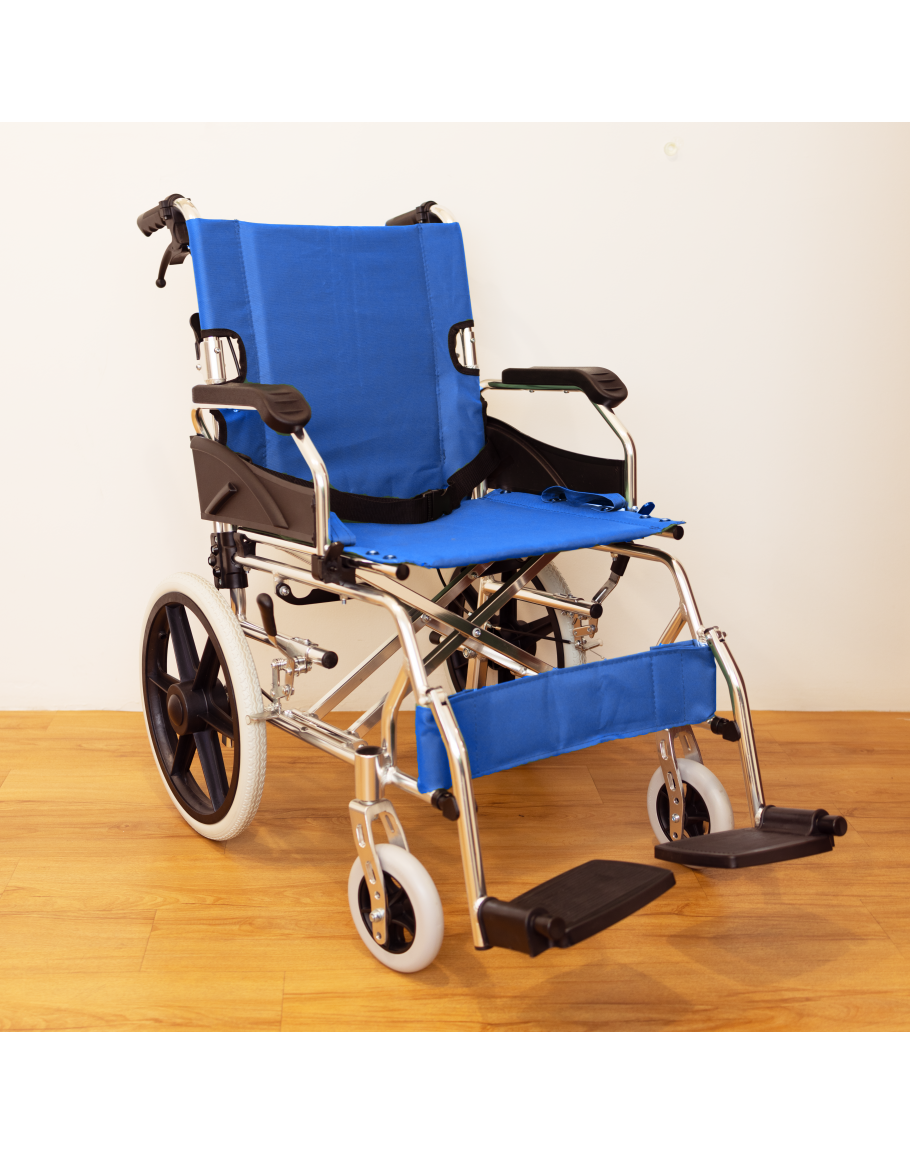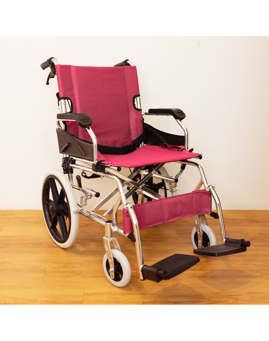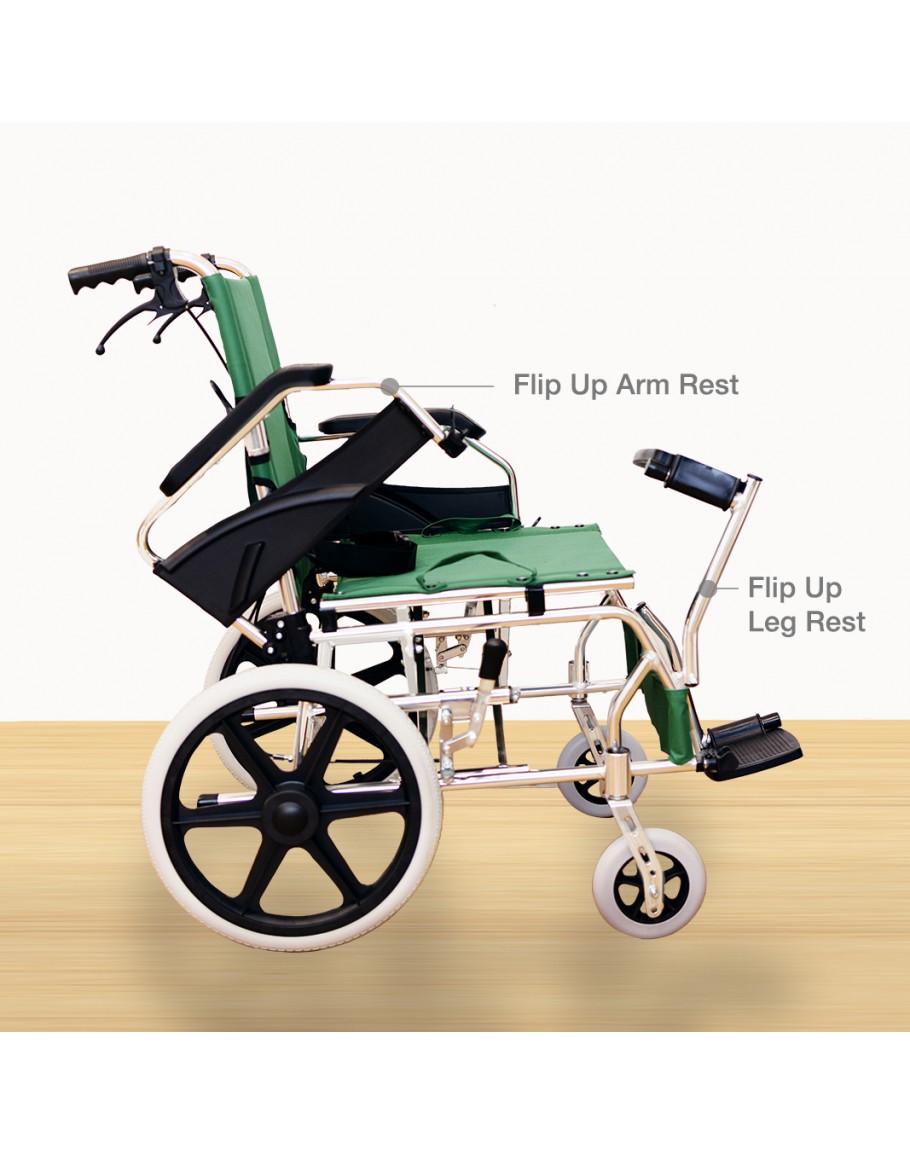 The FS863-207-16 Lightweight Wheelchair is designed with convenience in mind. It features flip-up armrests and footrests, allowing for easy entry and exit from the wheelchair.