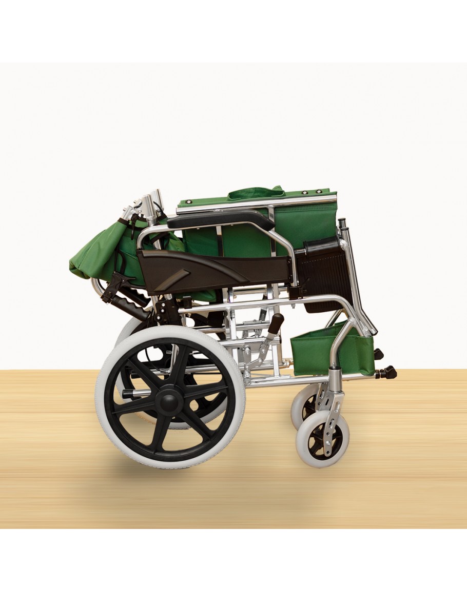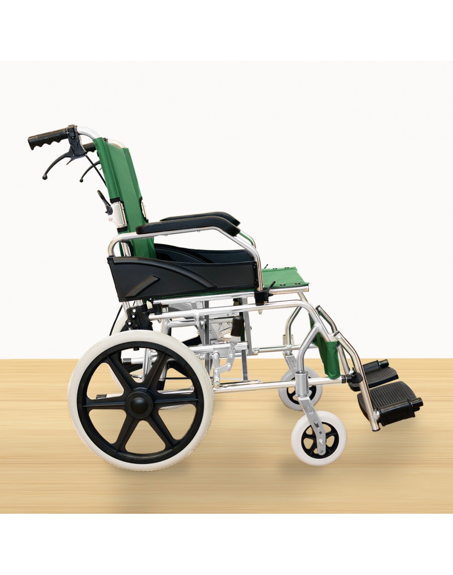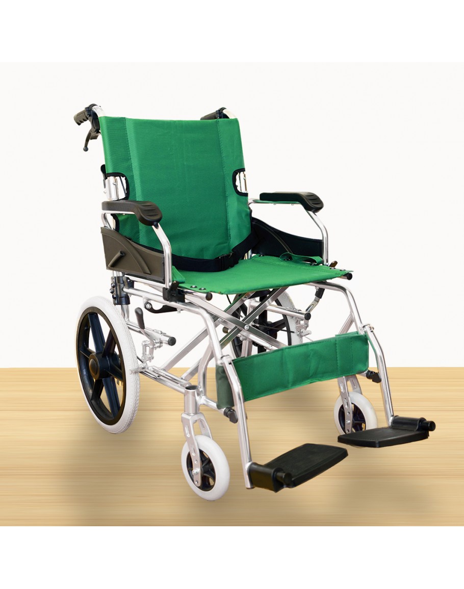 The FS863-207-16 Lightweight Wheelchair is designed with convenience in mind. It features flip-up armrests and footrests, allowing for easy entry and exit from the wheelchair.