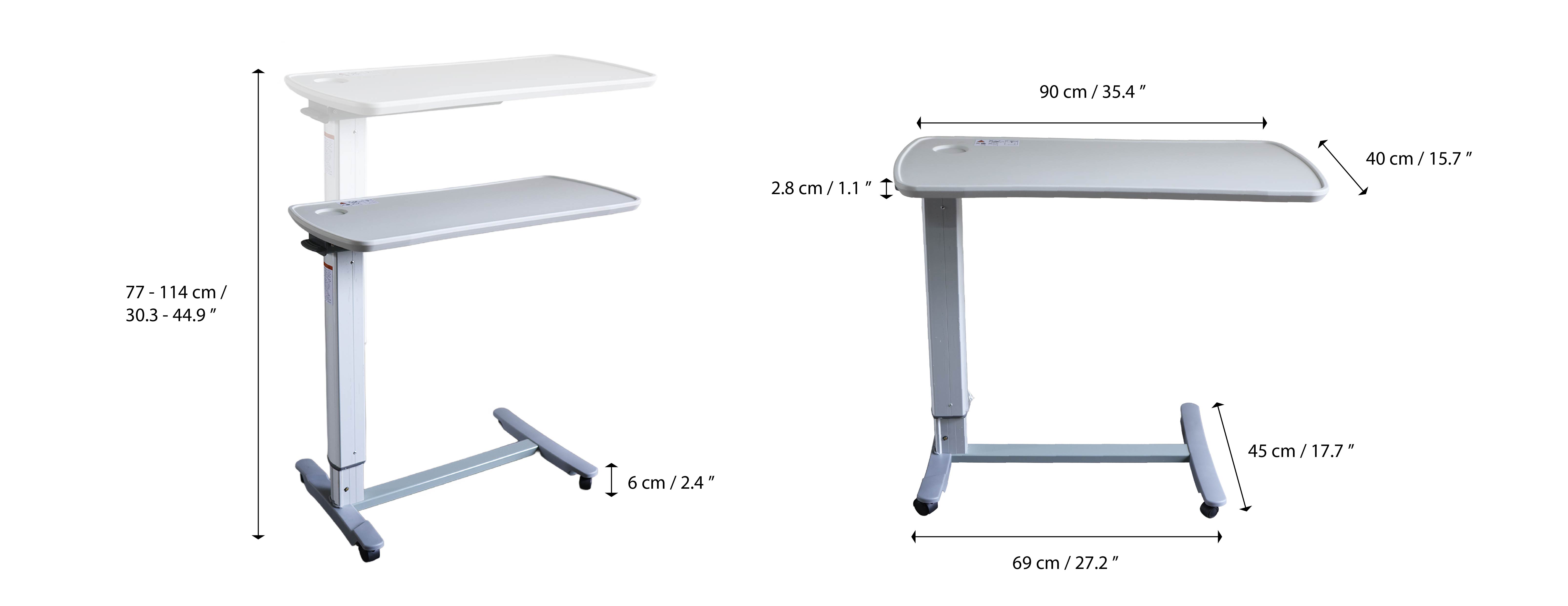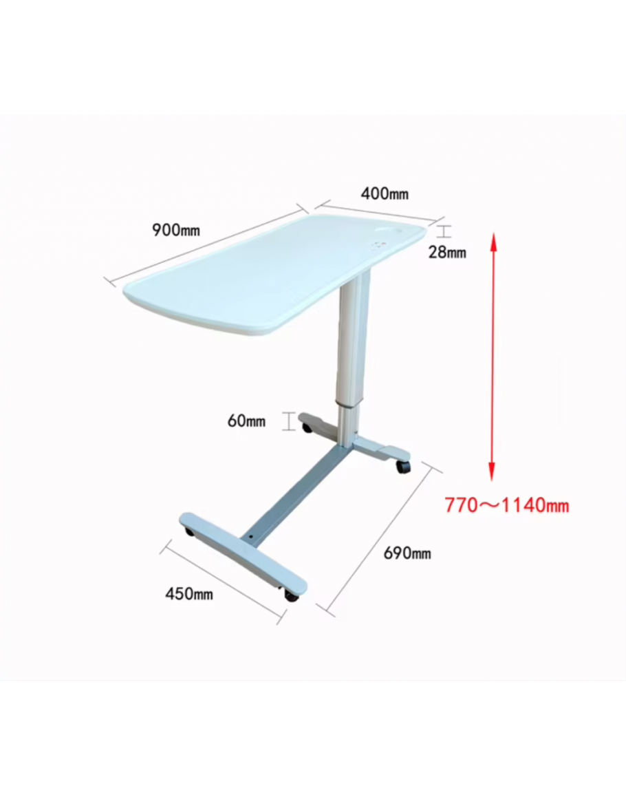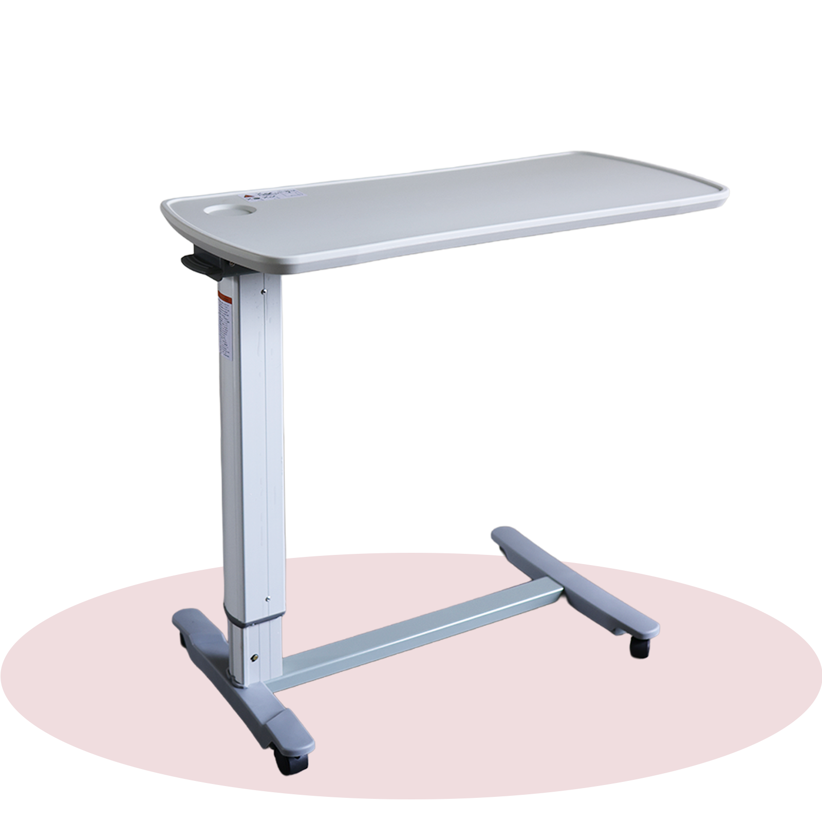 The JC-CB Overbed Table is designed to provide a stable surface for patients to eat or engage in other activities while lying in bed. It can be adjusted in height to accommodate different patient needs and preferences.