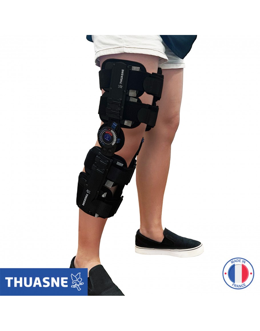 The Thuasne ROM-R2 Knee Brace hinges with drop locks and tool-free adjustable flexion and extension settings. Sturdy aluminium struts with extendable ends that telescope from 19″ to 26″.
