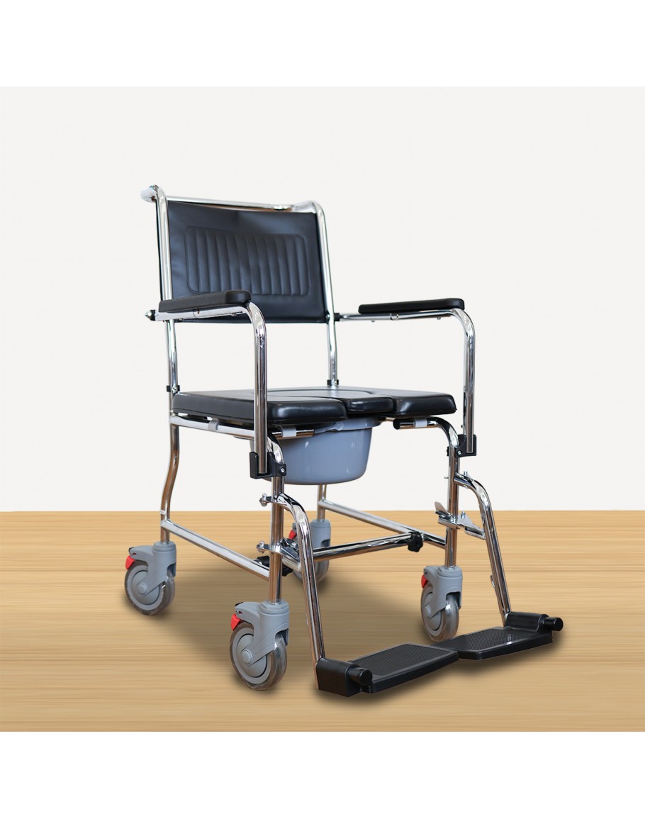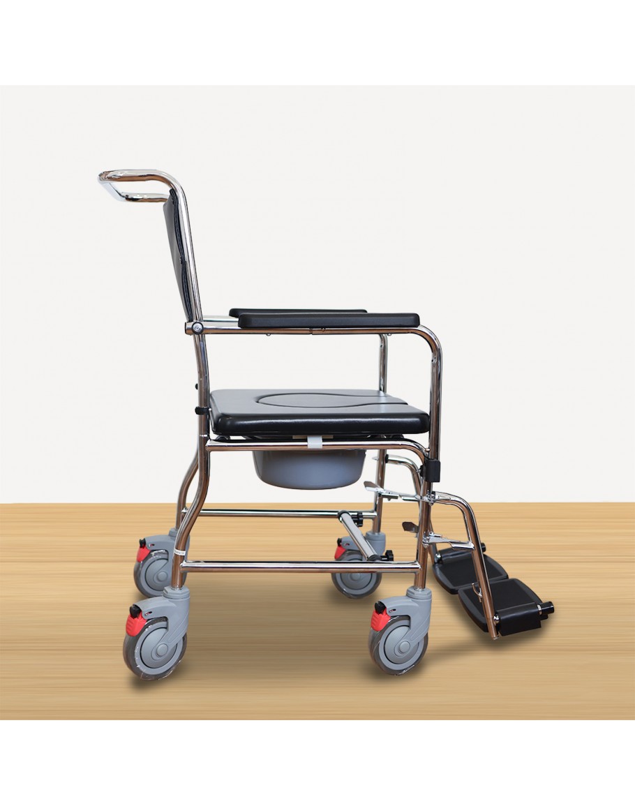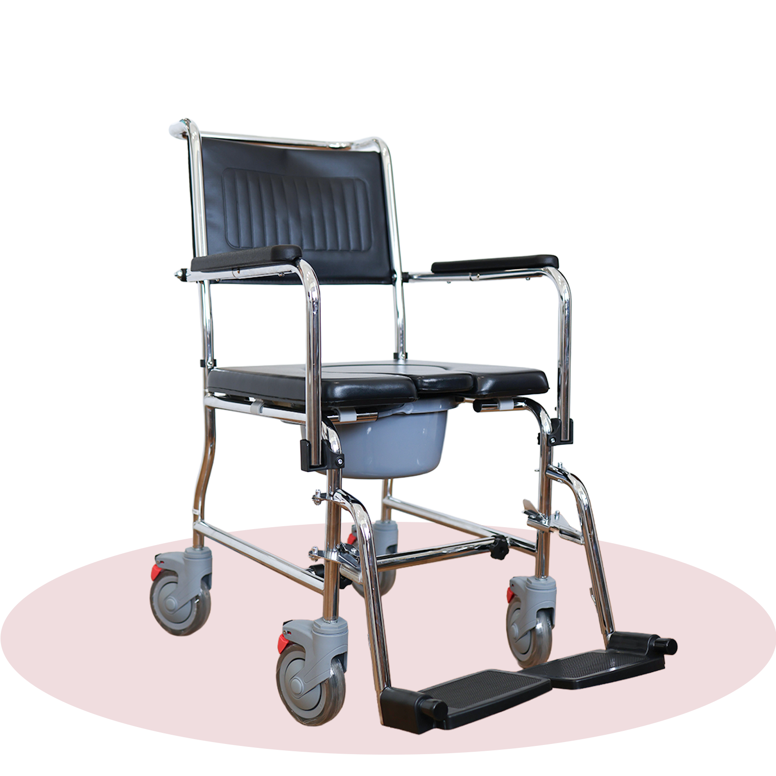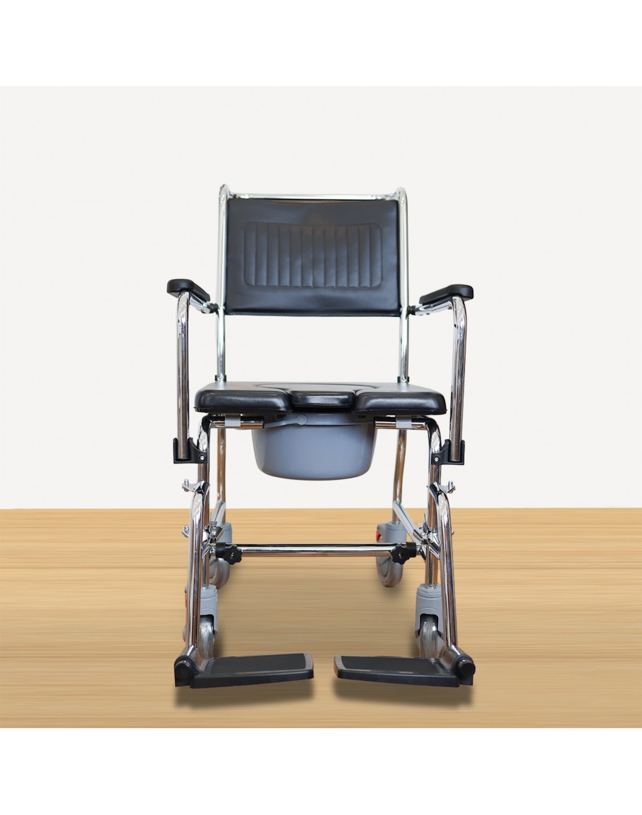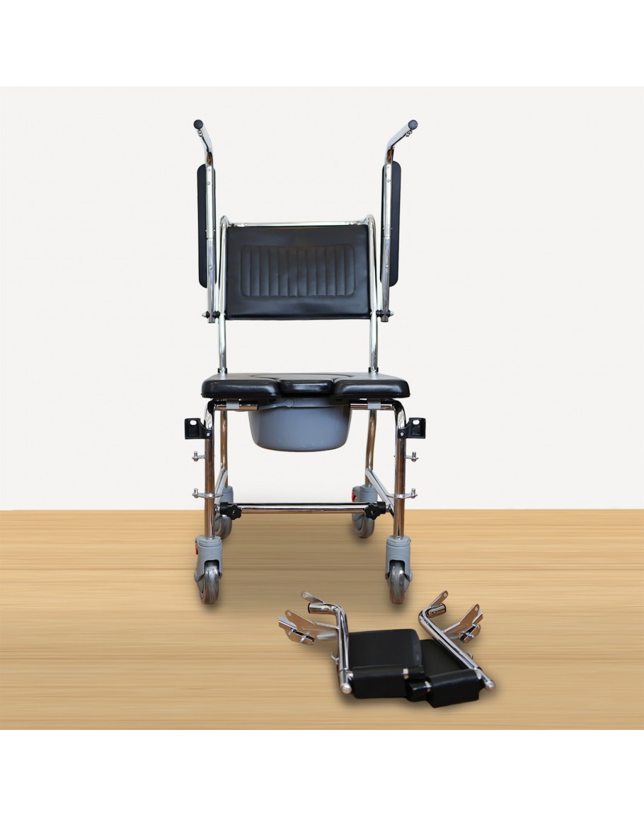 The KJW-312 Detachable Chrome Commodeis made of lightweight polished chrome frame and acts as a 2 in 1 commode, serving as both a commode and an indoor wheelchair.