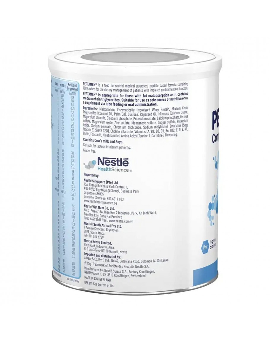 Nestlé Peptamen Complete Peptide Diet 400g is a nutritionally complete, hydrolyzed whey protein formula designed for easy digestion and absorption. Ideal for patients with gastrointestinal intolerance or malabsorption.