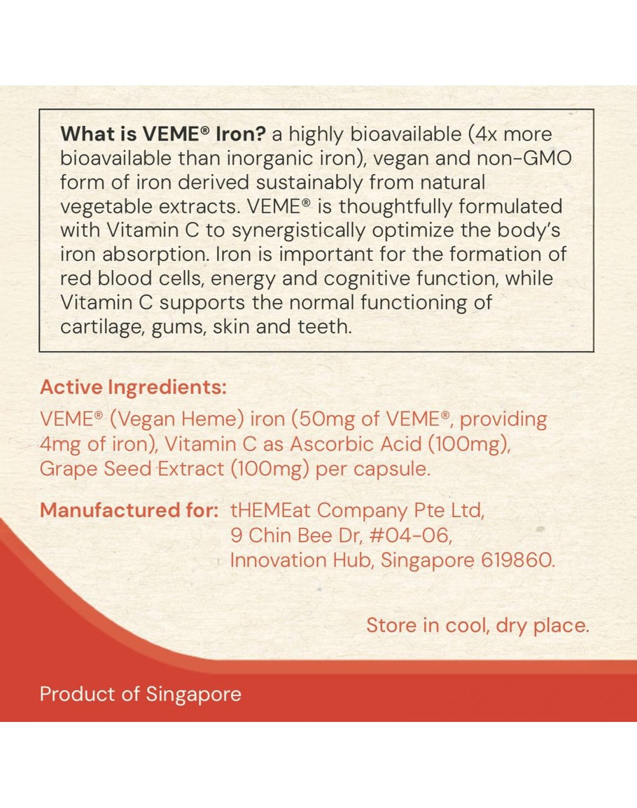 VEME® Iron is a vegan-friendly iron supplement formulated with iron and Vitamin C