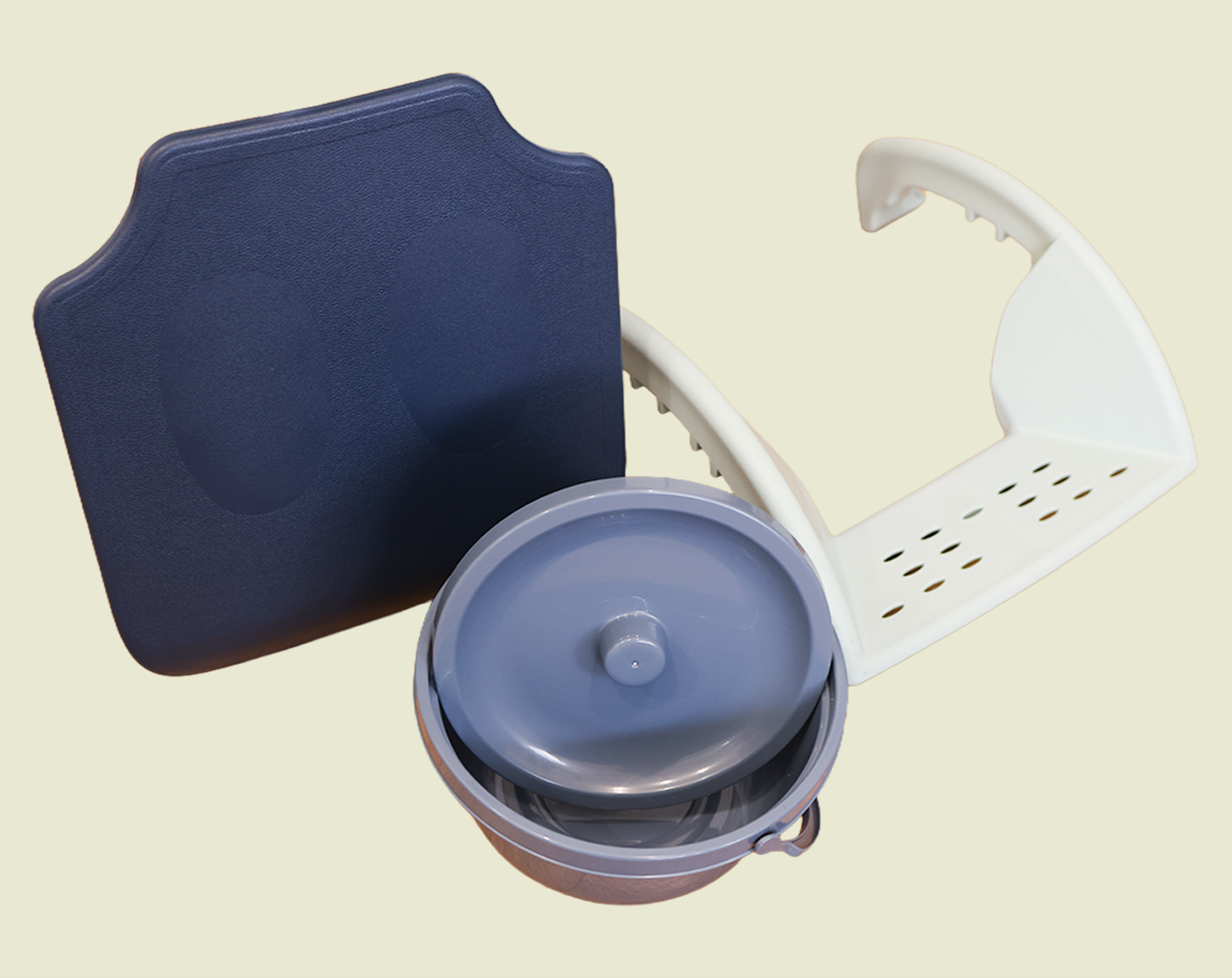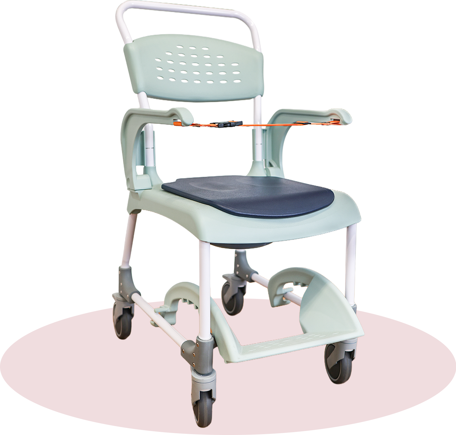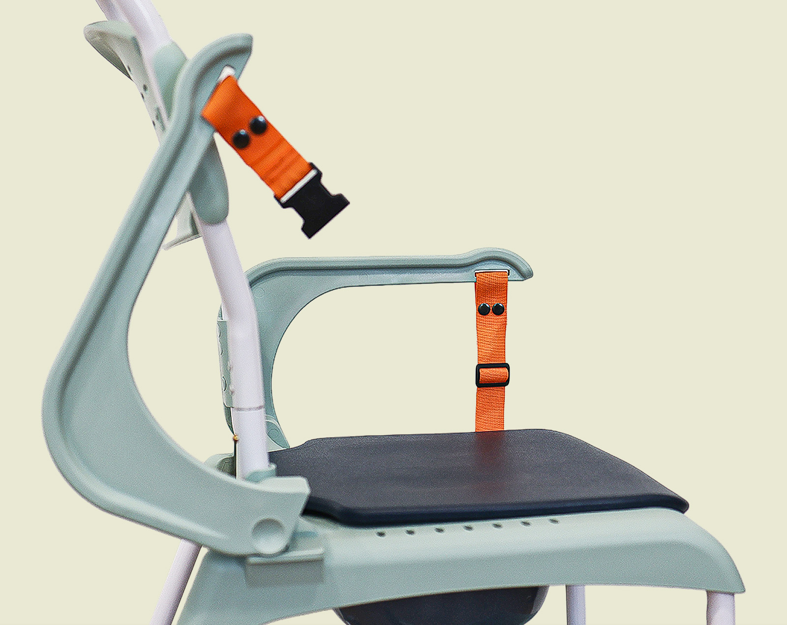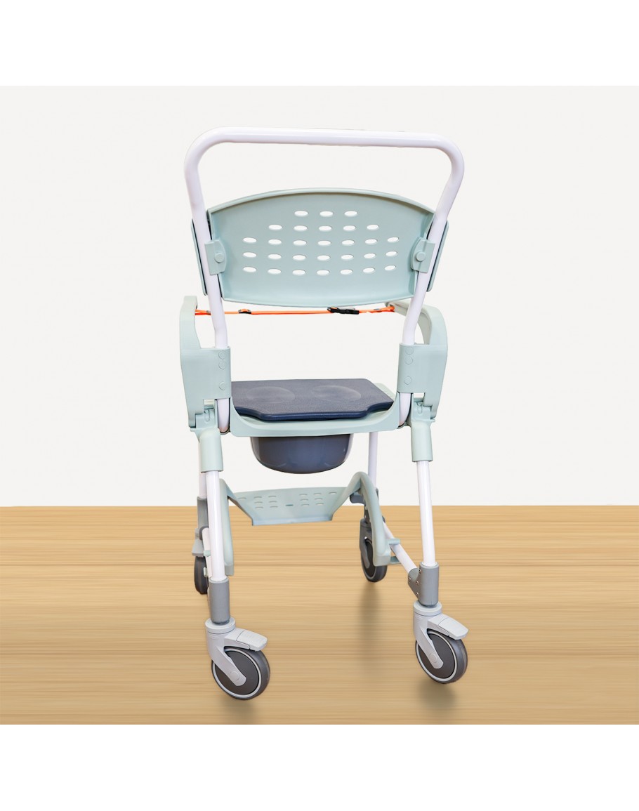 Aluminium Mobile Commode with Seat Belt designed for safe and comfortable toileting. Features a secure safety belt, removable bucket, and supportive backrest. Suitable for bedside or over toilet use in home and care settings.