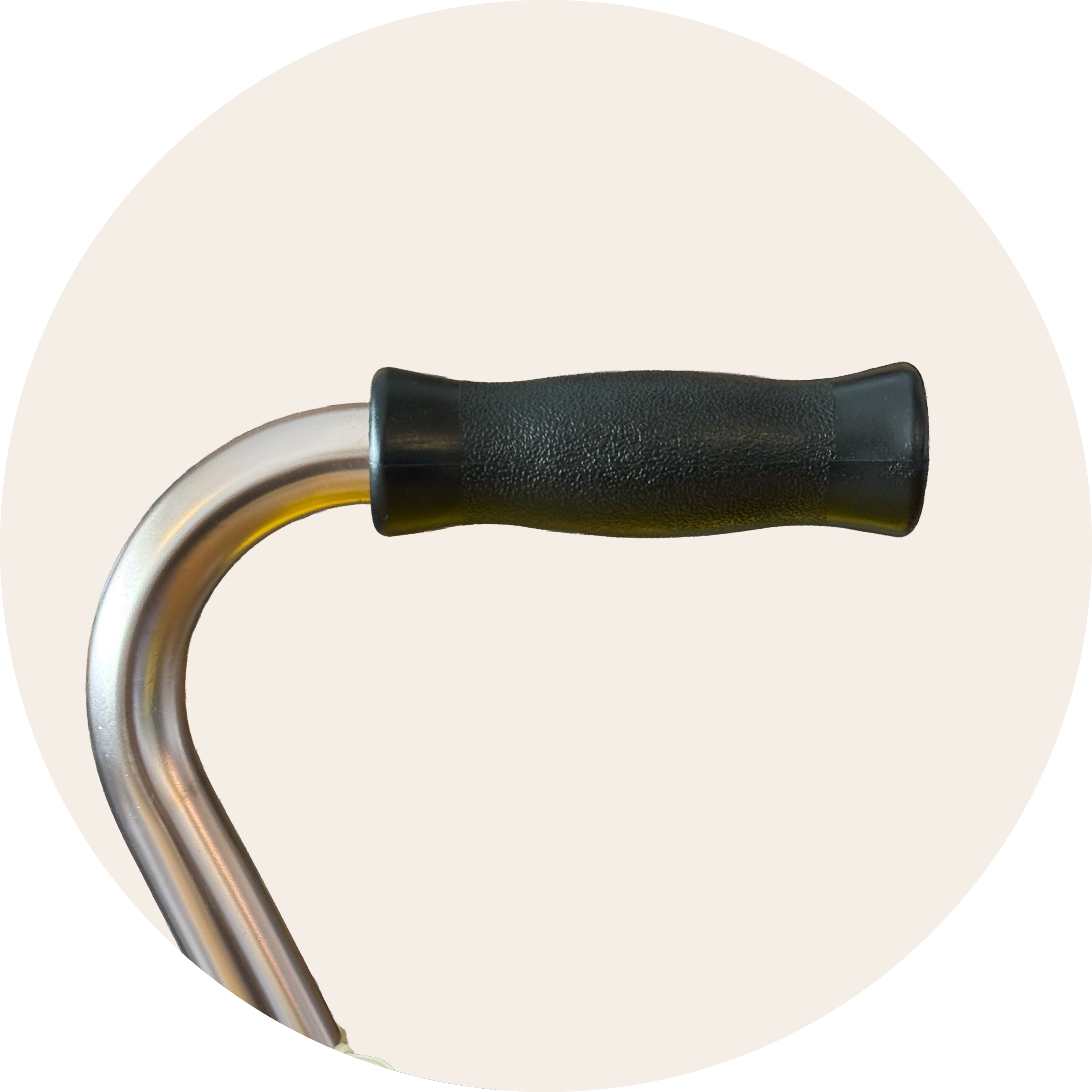 Curved design that rests comfortably in the palm and allows the stick to hook over the arm when not in use.