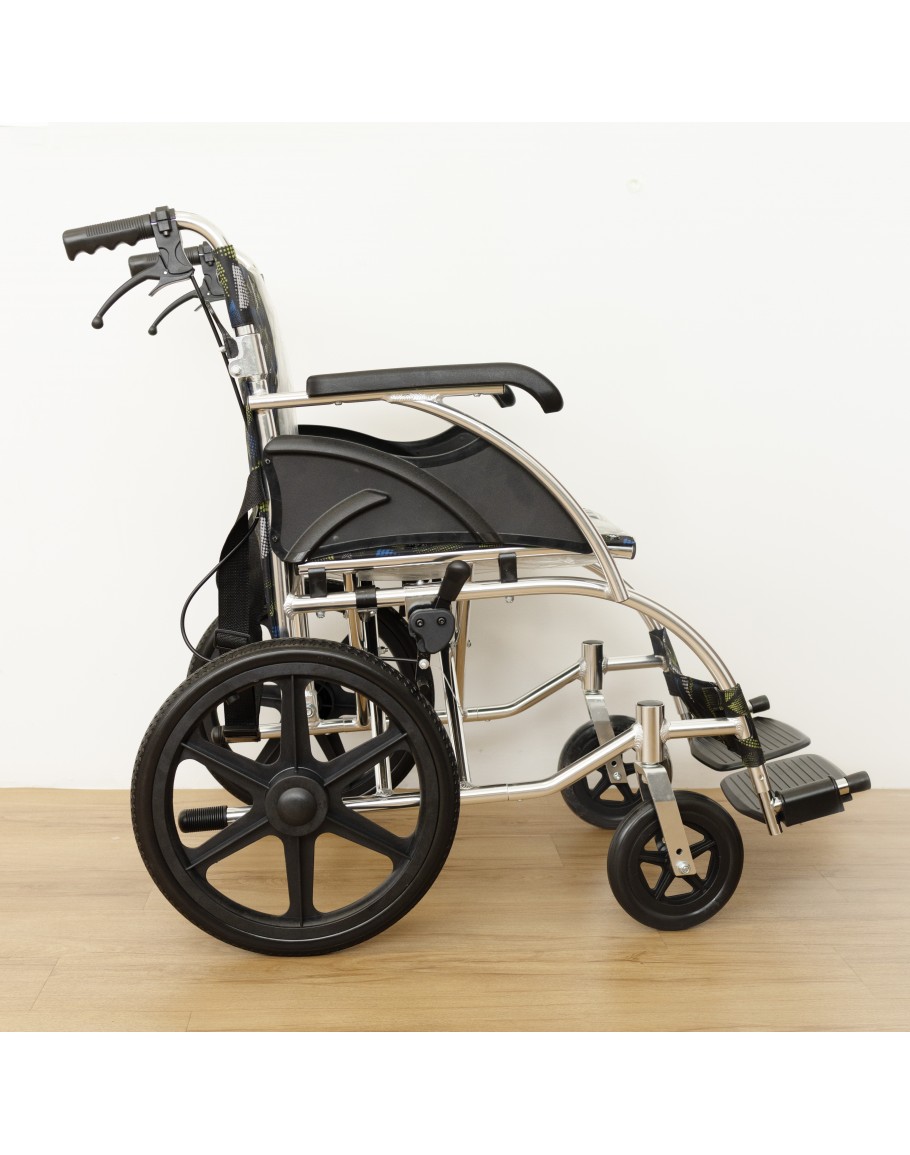 The FS870 is a standard lightweight wheelchair. At only 13kg, it holds a maximum user weight of 100kg. It has a strengthened aluminium frame for longer durability and stability.